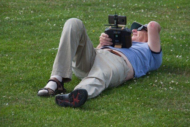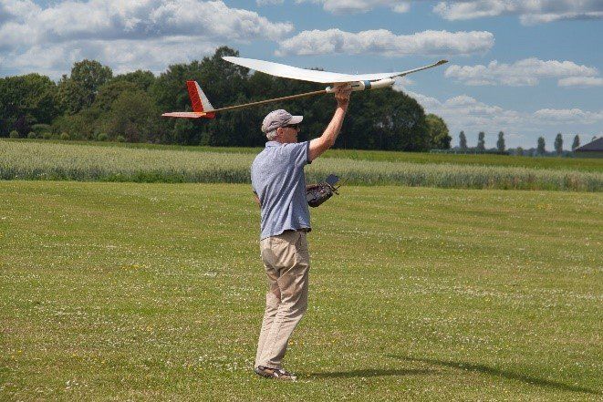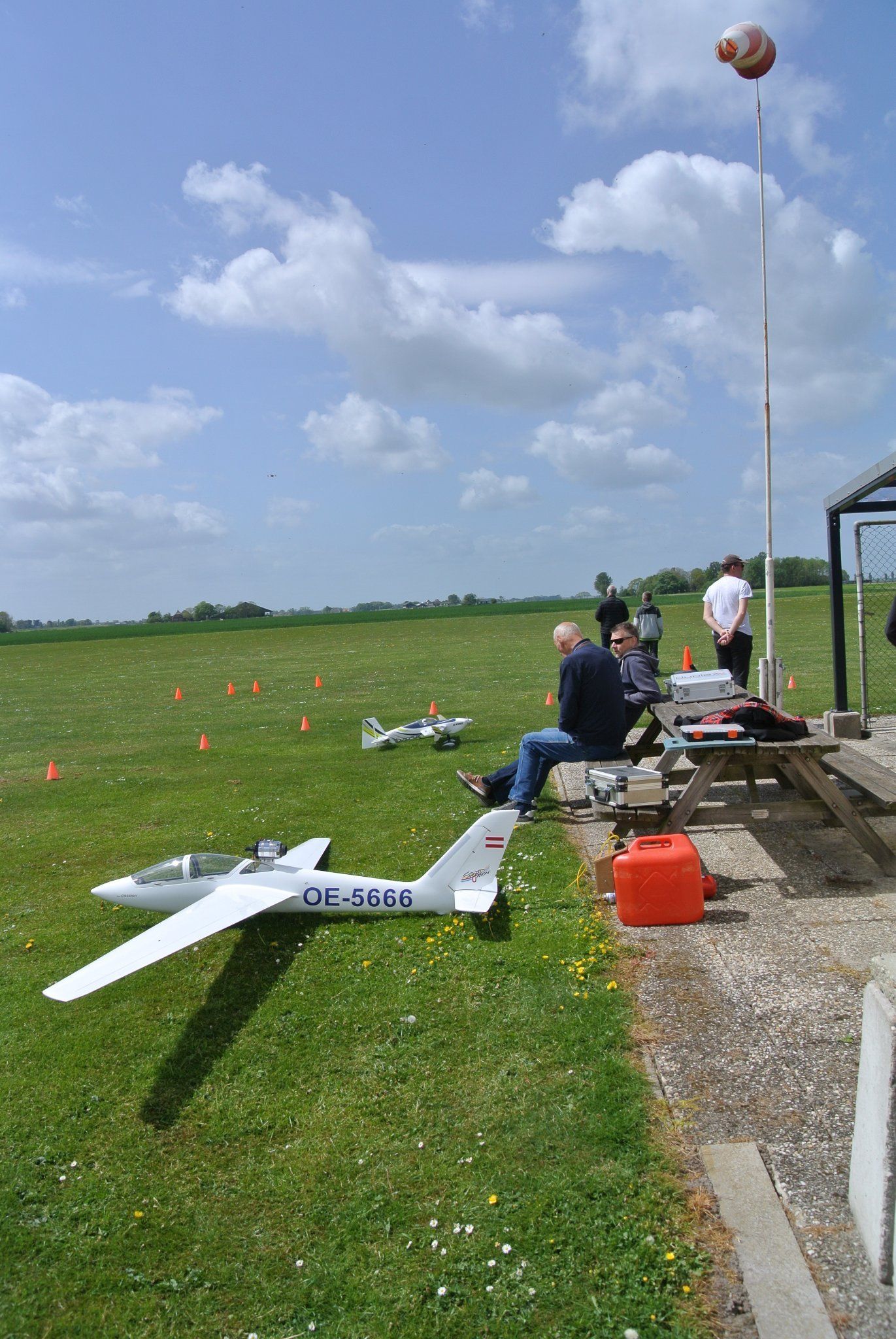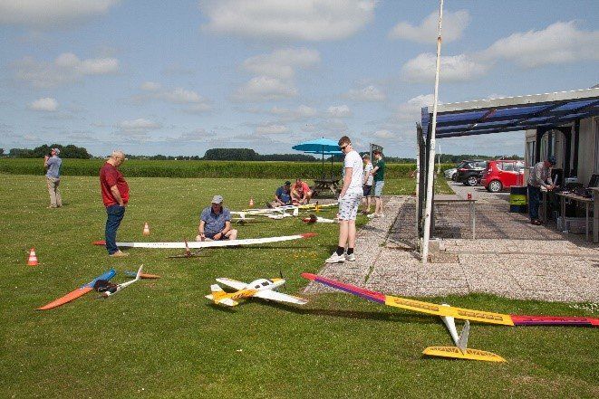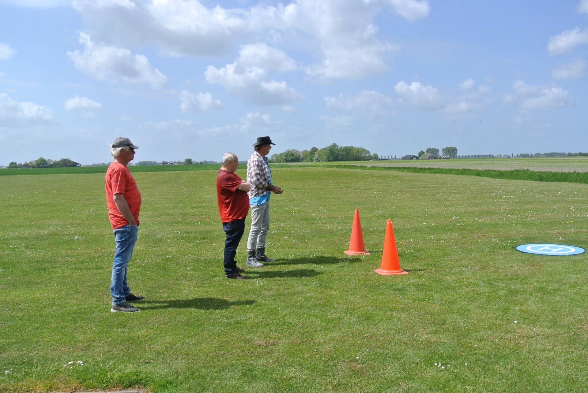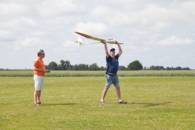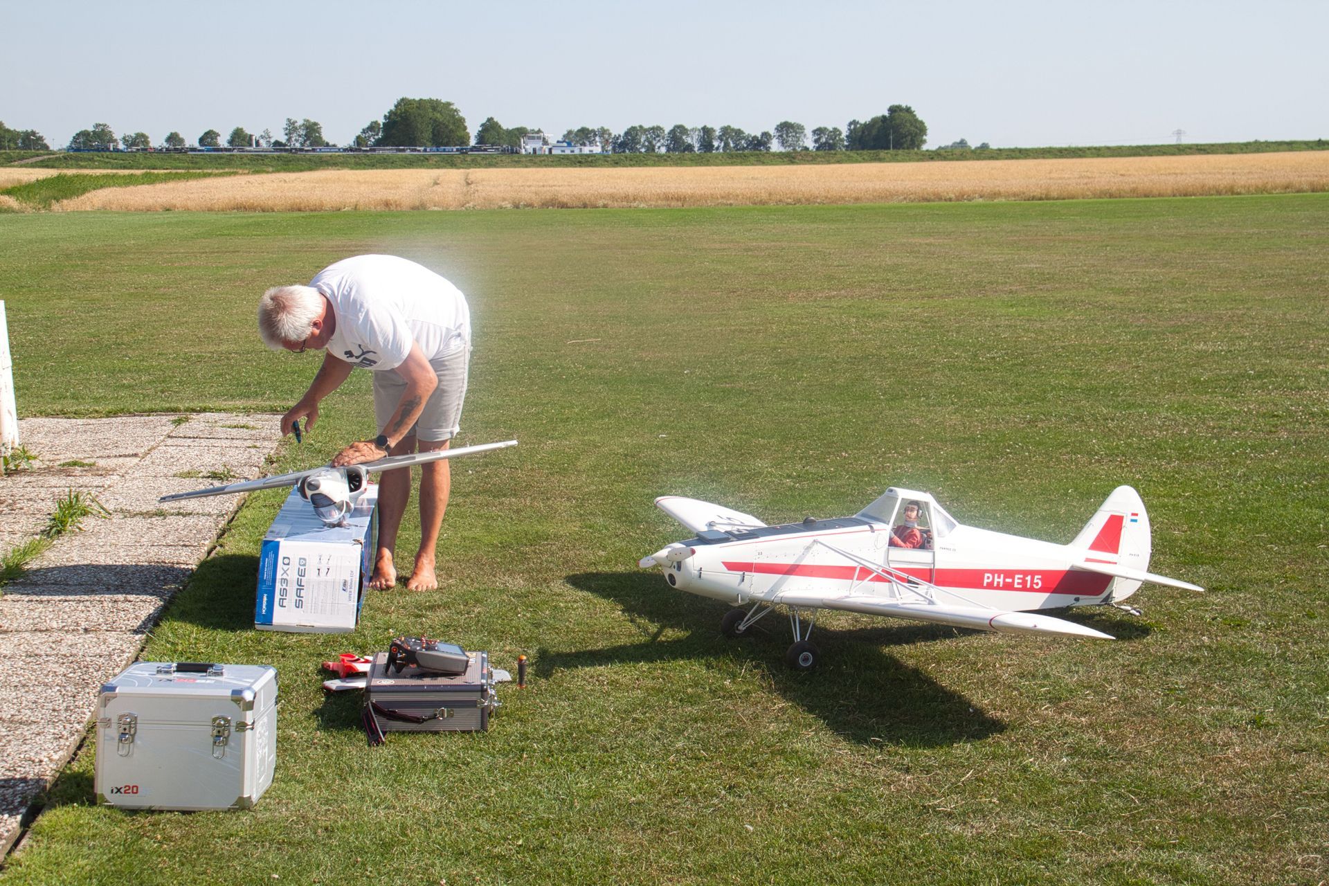 Het transport van modellen ging in die tijd niet zelden per fiets wat hier gedemonstreerd wordt door Jan Broeksema.